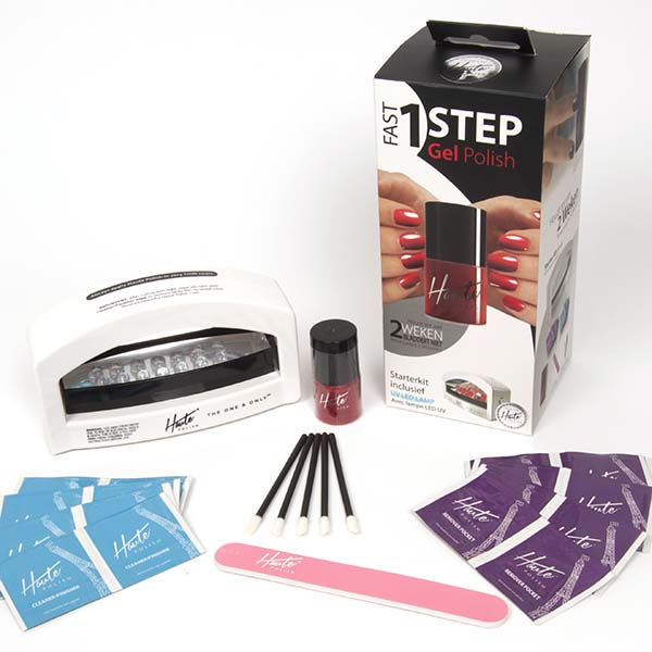 Haute Polish is verkrijgbaar in een complete starterkit, bestaande uit een professionele LED lamp, 1 rode gel lak, de nodige vijltjes, hulptools en gel polish verwijder doekjes. De Gel Polish kun je snel en gemakkelijk verwijderen zonder je eigen nagels te beschadigen.
